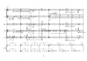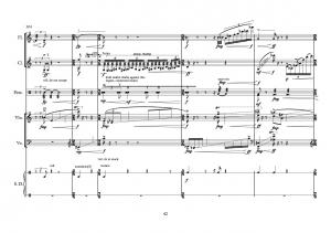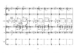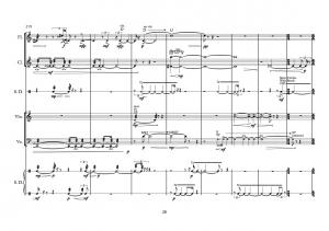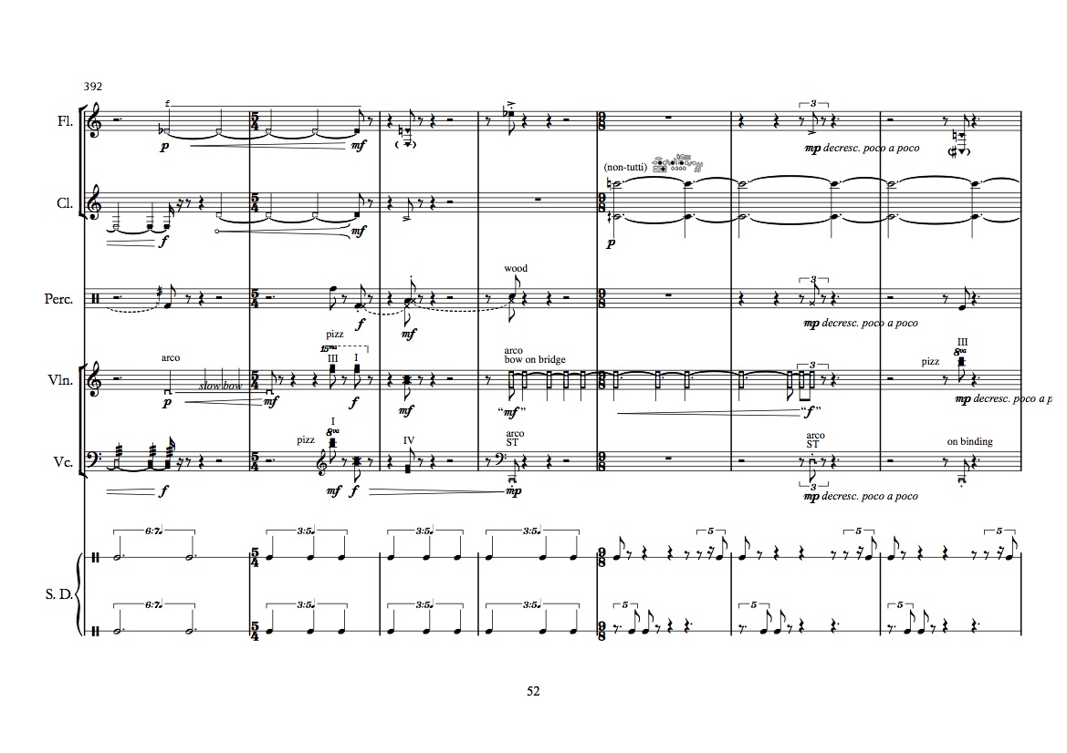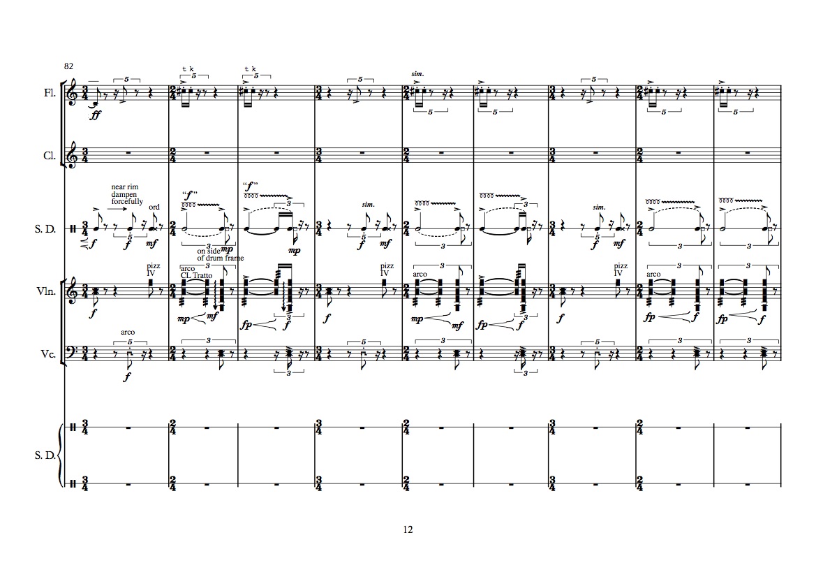 flute, Bb clarinet, violin, cello, percussion and 2 electrified snare drums