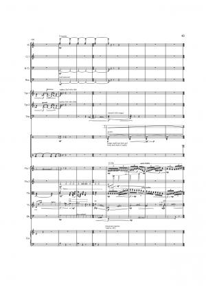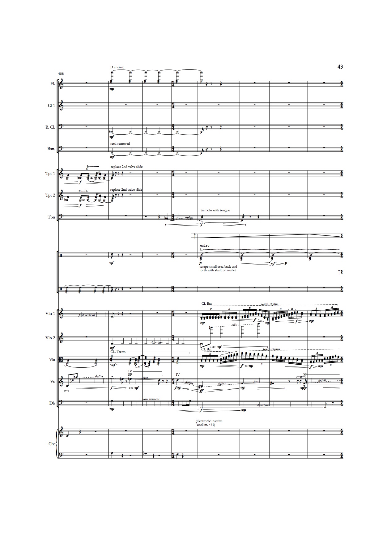 for fl, 2 clns, bsn, 2 tpts, tbn, 2 perc, 2 vlns, vla, vc, bass and electronic sound